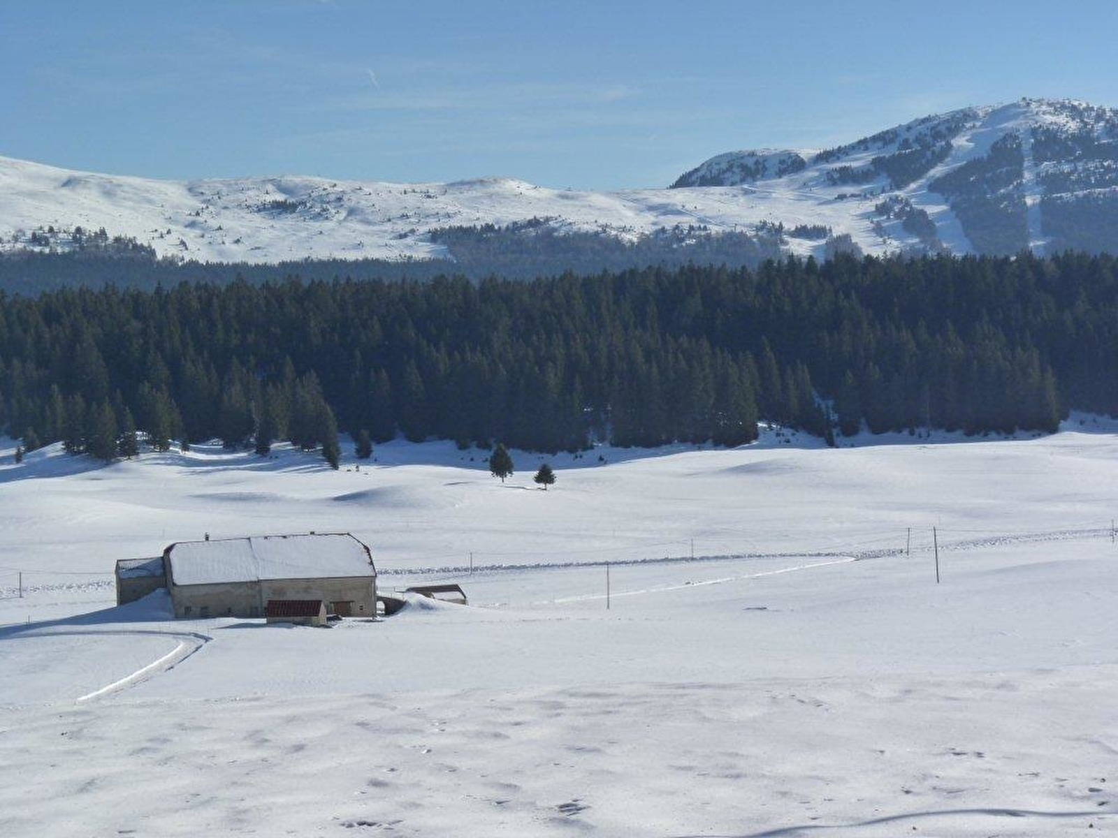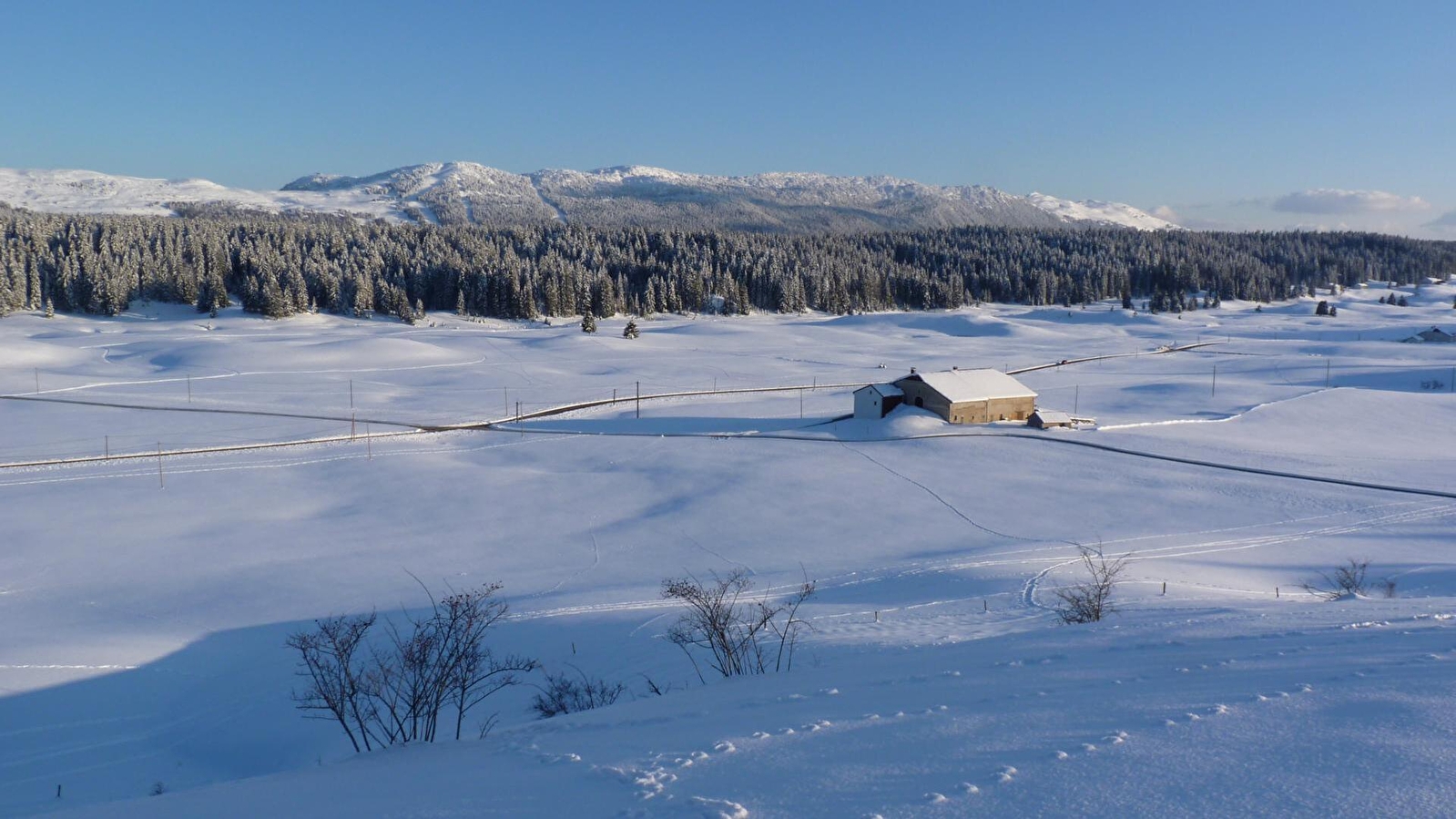 Authentique ferme du Haut Jura(alt:1200m) avec un large paysage sur la haute chaine (Monts Jura, Crêt de la Neige), nature et calme pour vous accueillir: entrée indépendante, à l'étage: séjour coin cuisine, une chambre (lit 140), salle d'eau, wc séparé, une mezzanine avec deux espaces couchages (2 lits simples et 1 lit simple avec possibilité d'un quatrième couchage). Local à skis, vélos, espace à jeux, terrain attenant non clos, terrasse, jardin, mobiliers d'extérieur.Équipements: micro onde, TV, lave linge. Chauffage central, toutes charges comprises, taxe de séjour en sus. animaux non admis. Toutes activités a pied et à vélo dans le PNR du Haut Jura; l'hiver ski et raquettes sur les GTJ.