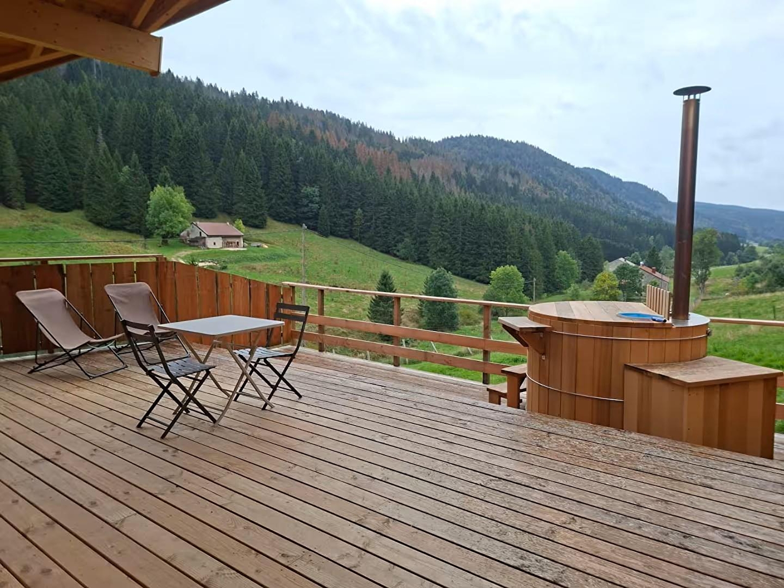 Besoin de calme et de nature? cette cabane en bois vous offrira une immersion totale dans la nature avec une vue imprenable sur la vallée et le ruisseau en contre bas. Elle se compose d'une pièce de vie avec coin kitchenette, espace repas et salon, d'une salle d'eau avec douche et WC et d'un coin nuit en mezzanine avec 2 lits simples et 1 lit double d'où vous pourrez admirer le panorama sur la nature environnante. Pour votre plus grand confort votre lit sera fait à votre arrivée et les serviettes sont fournies. Côté extérieur, vous pourrez profiter d'une terrasse avec bain nordique, salon de jardin et barbecue Idéalement située au cœur du parc naturel du Haut-Jura, vous pourrez profiter de nombreux loisirs de pleine nature : ski de fond, cyclotourisme, randonnées. Vous trouverez également, au coeur du village, à 5 mns en voiture de nombreux commerces (restaurants, boulangerie, charcuterie, fromagerie, supérette). Parking sur place à côté de la cabane. Possibilité d'accueillir une ou deux personne supplémentaires : +30 euros par personne