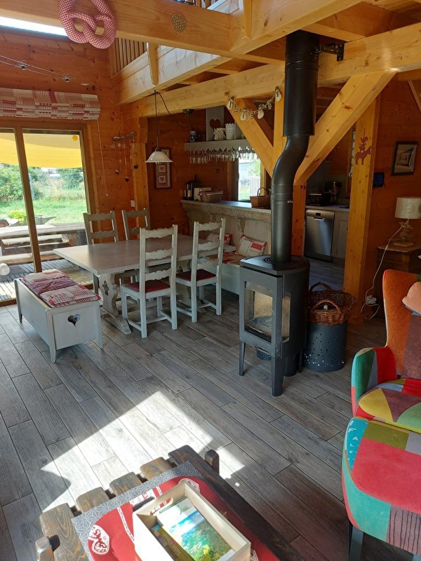 Idéalement situé pour les amoureux de la nature, ce chalet se compose au RDC d'une pièce de vie avec cuisine toute équipée, coin salle à manger et salon avec TV et poêle à bois, d'une chambre avec un lit double (140*190), d'une salle d'eau et d'un WC indépendant. A l'étage une mezzanine avec coin détente et 2 chambres : l'une avec un lit double (140*190) et l'autre avec 2 lits simples (90*190). Côté extérieur, un salon de jardin avec barbecue et des transats vous permettront de profiter des beaux jours. Un sauna est également à votre disposition (supplément de 10 euros par séance à régler sur place). Le gîte est idéalement situé pour les loisirs de pleine nature : ski de fond/raquettes, randonnées et un téléski pour la découverte du ski de descente se trouve au centre du village.