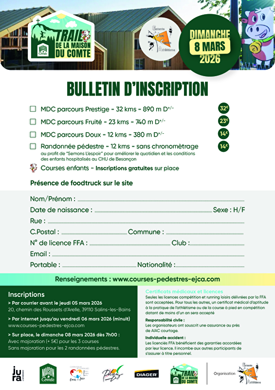 Au départ de la Maison du Comté, les coureurs s’élanceront depuis l’entrée principale avant de plonger dans les sentiers polinois. Les arrivées se feront dans les espaces verts, au cœur d’un écrin naturel et accueillant, idéal pour partager un moment en famille ou entre amis.