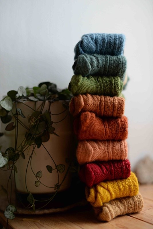 Créations en feutre de laine à partir de fibres naturelles et teintures végétales.