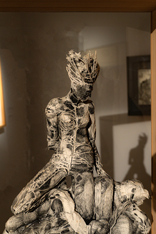 Une seconde salle lui est également dédiée, grâce à des prêts exceptionnels de l’association des amis de l’artiste, du Conseil départemental du Jura et de sa famille jurassienne. Si la majorité des pièces est présentée au deuxième étage du musée, certaines ont été volontairement dispersées dans d’autres espaces, à des points stratégiques du parcours. Cette mise en scène subtile permet de créer des croisements de sens, de tisser des histoires entre les œuvres et de les mettre en résonance avec leur lieu d’exposition.